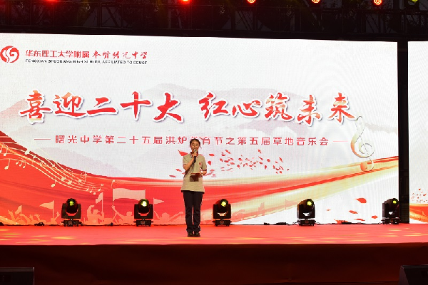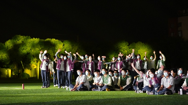率先上场的是高二年级部的老师们。《稻香》袅袅,同学们纷纷跟唱,或是为了自己喜爱的老师们应援。