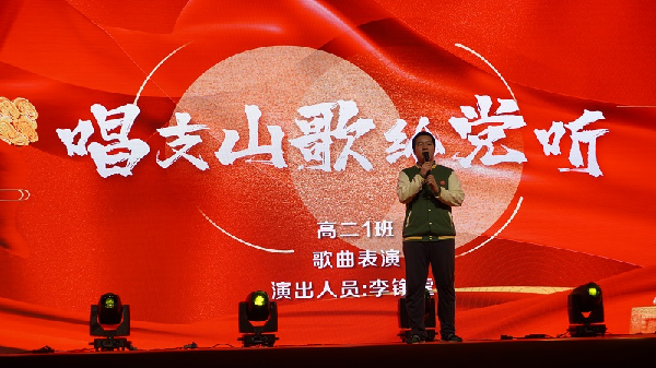 二十大将近,一班的李峥霆带来《唱支山歌给党听》,让党也能远程分享到我们节庆的快乐,看到新时代曙光学子的昂扬姿态。