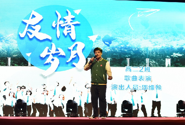 2班邵维翰同学标准的粤语令我们为之惊叹,深沉的嗓音使我们回忆起曾经那一段闪着光的友情岁月。