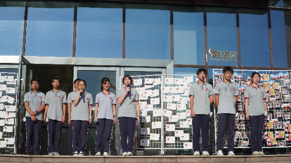 仪式现场的展示架格外引人注目,上面陈列着各班同学写给老师的贺卡,字迹里藏着日常相处的温暖细节,在晨曦中闪着真诚的光,成为现场最动人的风景。