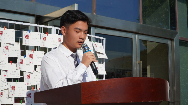学生会主席朱政代表全体同学发言,他细数三年来老师的陪伴与指引,从课堂上的耐心讲解到课后的悉心关怀,将“亦师亦友”的师生情谊娓娓道来,更以真挚的话语为全体老师送上节日祝福,道出了每一位曙光学子的心声。
