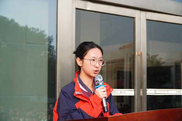 高二9班蒋沛玲作为学生代表进行主题发言,她感概获得这份荣誉,没有谁是孤军奋战,是每个人的默契配合,汇聚成了不可战胜的团队力量。从运动会中领悟的团队精神,必将助力他们在本周的学农活动中收获成长。