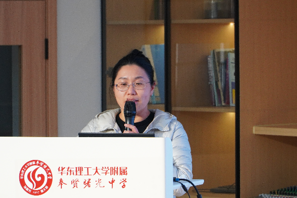 下午时分,主题分享与互动交流活动在综合楼4楼艺术空间拉开帷幕。活动由曙光中学副校长张晓东主持,校党总支书记孙贤欢首先致辞欢迎,对合肥研修团的到来表示热烈欢迎,并简要介绍了学校的办学理念与特色发展历程。随后,4位分享教师依次登台,金秋逸老师分享了高中化学跨学科项目化学习实践,刘吴玮老师介绍了“思政+素质”融合发展的模拟政协活动经验,杜青老师聚焦红色血脉传承与史学素养培育,倪洁老师探索劳动教育校本化实施路径。最后曙光中学校长杨文英则从从学校整体发展视角,系统分享了学校在特色建设、文化传承、人才培养等方面的宝贵经验。