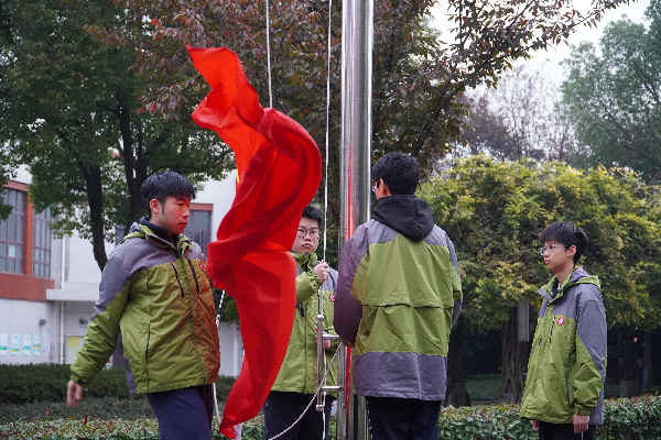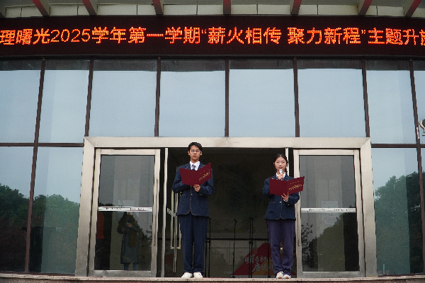 11月24日,我校举行2025学年第一学期第13周“薪火相传 聚力新程”主题升旗仪式,本次仪式由高一1班朱哲正、胡安琪主持。