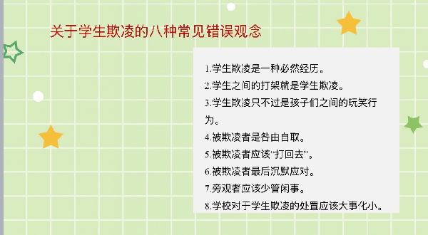 班会中,各班级首先围绕“认识学生欺凌”展开深入学习,明确了肢体欺凌、言语欺凌、财务欺凌、网络欺凌等不同形式的具体表现,并重点辨析了关于学生欺凌的八种常见错误观念,帮助同学们打破认知误区,认清欺凌行为的危害与边界。