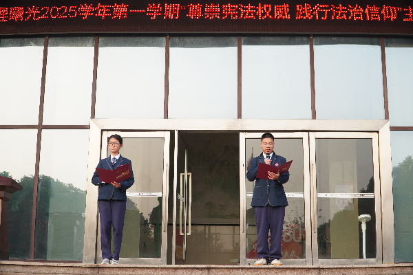 12月1日,为迎接第十二个国家宪法日,我校举行2025学年第一学期第十四周“尊崇宪法权威 践行法治信仰”主题升旗仪式,由高一七班阎思霏、吴艾泽主持,全体师生共同接受宪法精神的洗礼。
